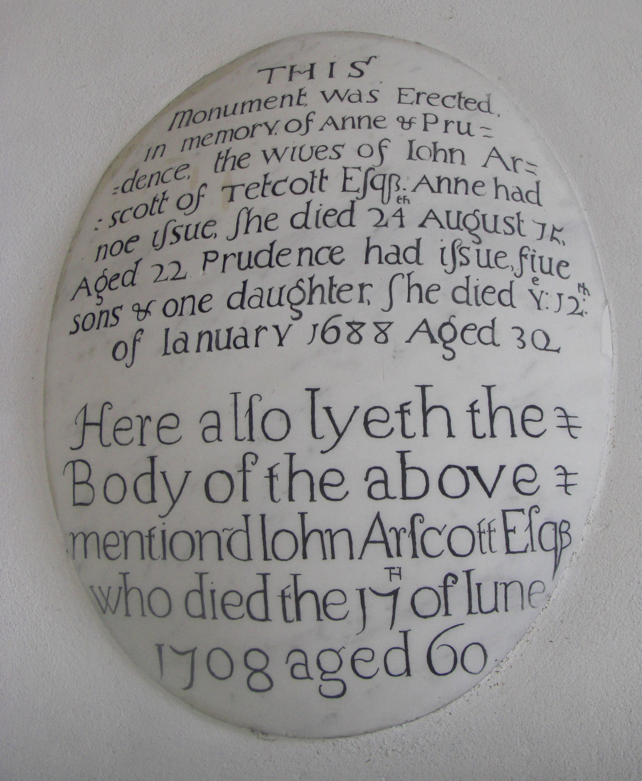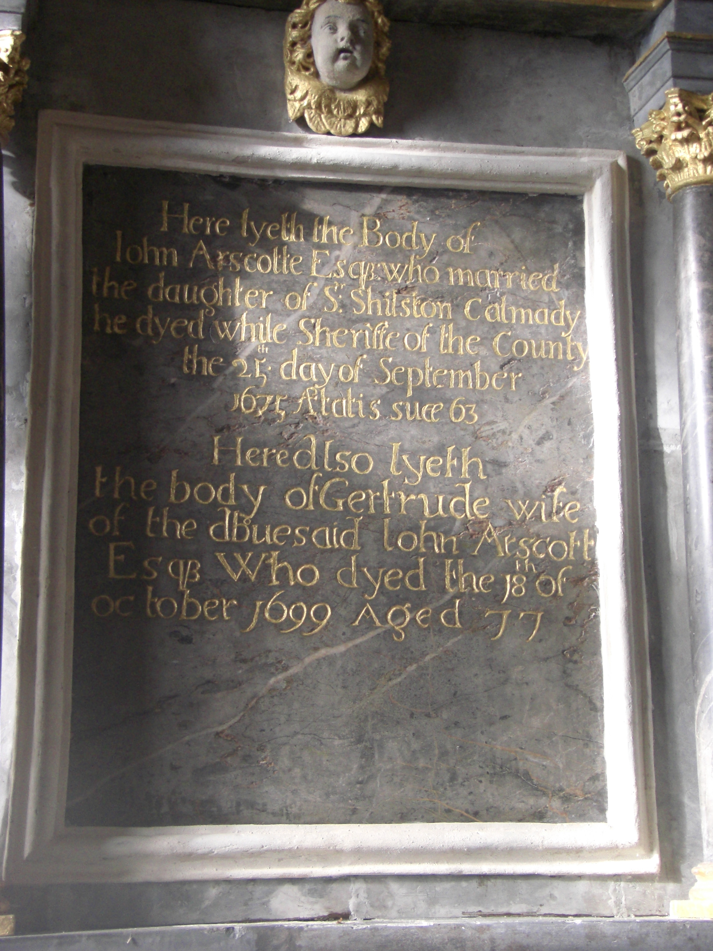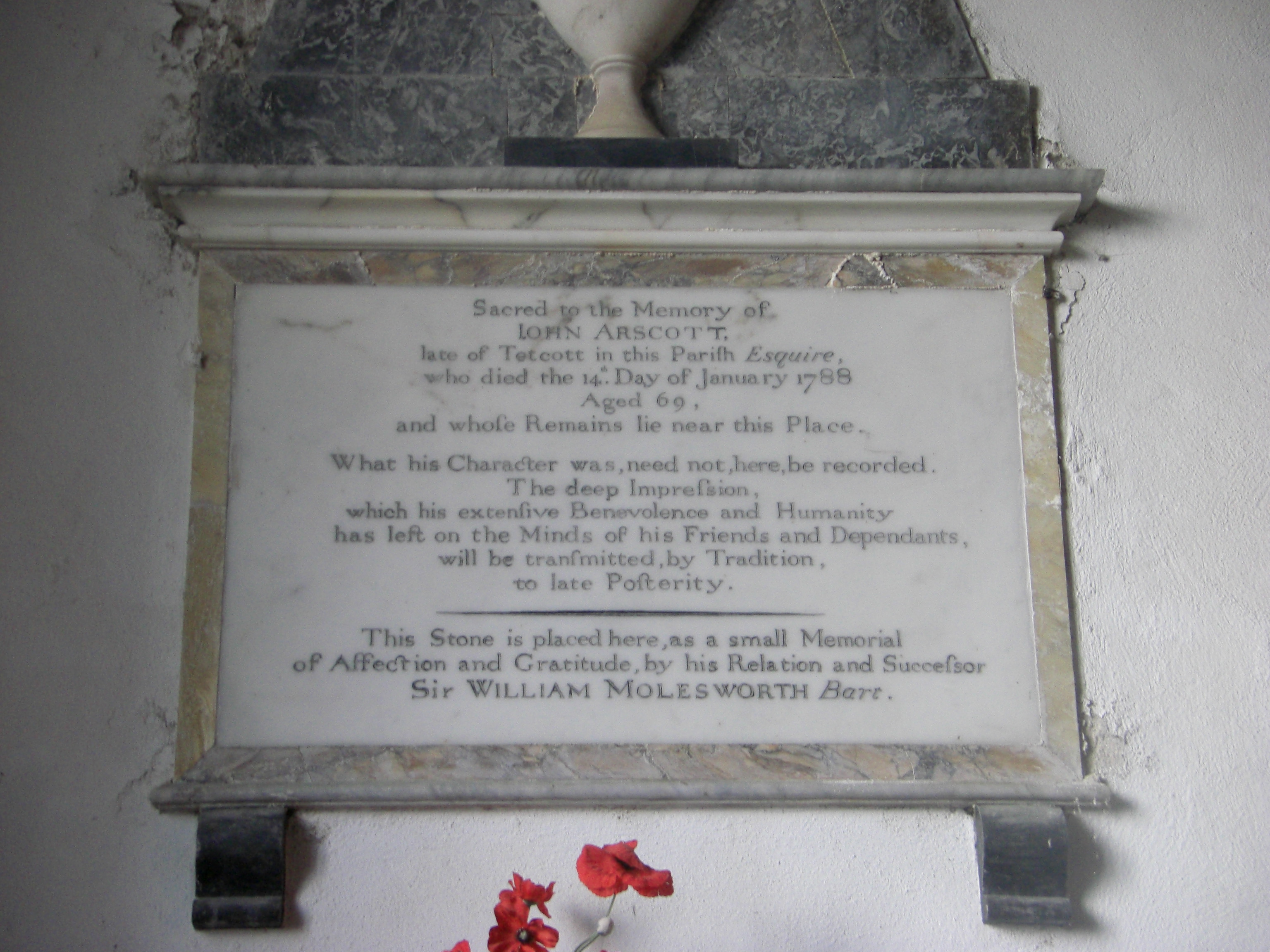 John, along with many of his Arscott predecessors, are commemorated inside the church with grand memorial stones and tablets of various sizes and shapes.