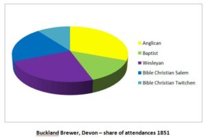 So what did Phase 1 involve? After providing background information about our communities, we looked in detail at the 1851 ecclesiastical census. This was a fascinating exercise in itself and we were asked to produce pie charts to show the proportion of attendances that each denomination attracted.