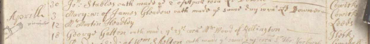 A crudely drawn hand with the inscription, “ye benefactor” spotted alongside an entry in the 1687 burial records of the Priory Church of St Laurence, Snaith, was my first introduction to the world of Martin Headley … a man who, it seems, was loved by some but despised by many.