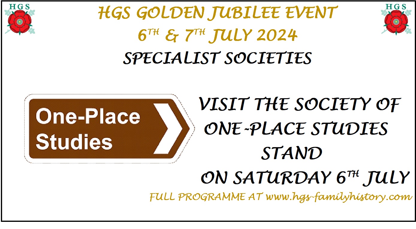 We’ll be showcasing some of our one-place studies, so if you would like us to feature your one-place study on our stand, please email Liz, our treasurer.